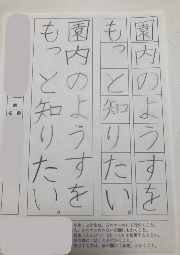 最近は、書く前にお手本をじっくり見て「どこを気をつけて書こう?」と自分で考えられるようになっており、その“研究する力”が見事に字へと表れています。